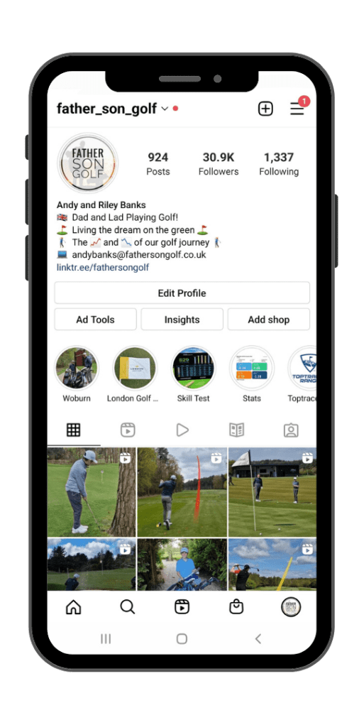 We are proud of the page and enjoy putting out daily content / stories for our audience to enjoy. Our content concentrates on the journey and our ‘up’s and down’s’ whilst playing golf; let’s face it, there are many. We also create content around these experiences which shows us playing golf holes, practicing with purpose and of course, our favourite ‘Father Vs Son’ games.